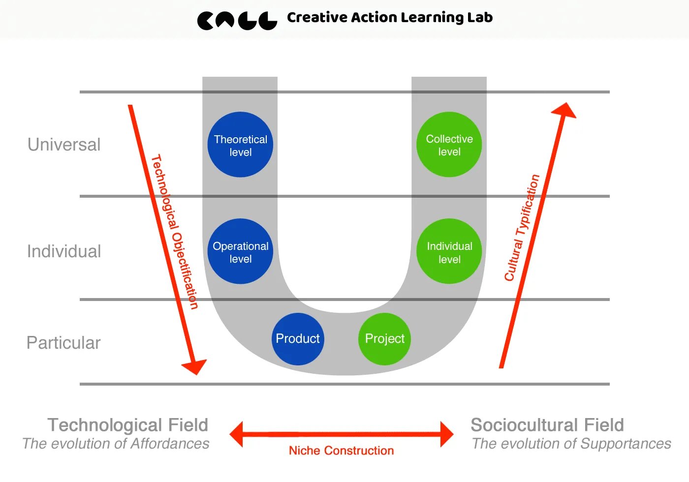 Ultimately, the framework aims to provide a structured way to analyze platform-based social innovation by examining transformations like Technological Objectification and Cultural Typification, grounding the approach in a philosophy of Creative Realism.