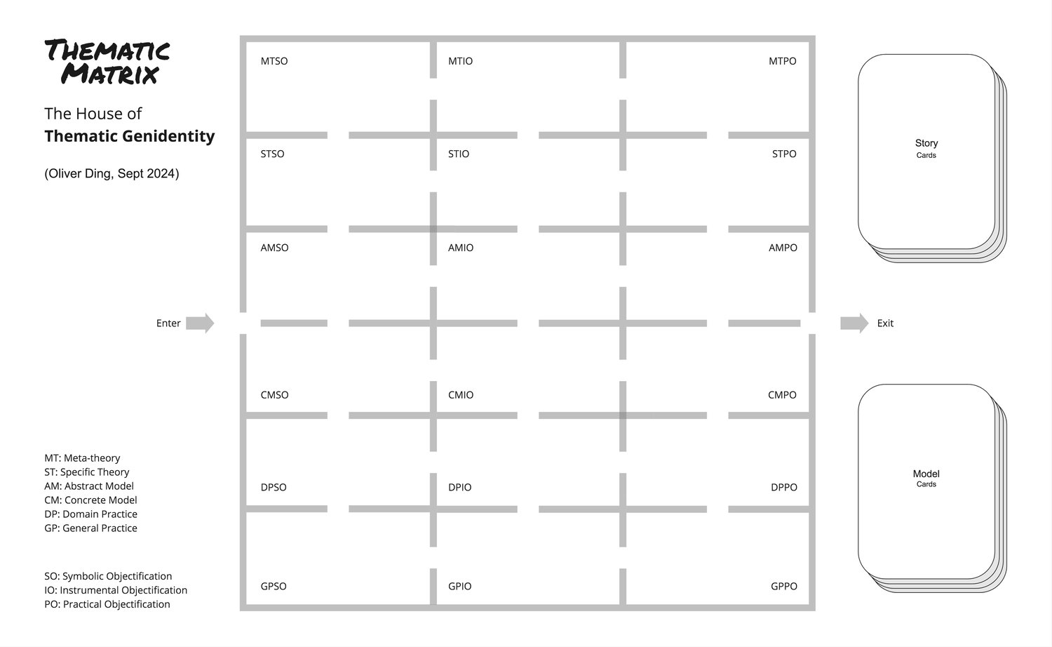 The House of Thematic Genidentity visualizes this process through a 6×3 grid, combining: