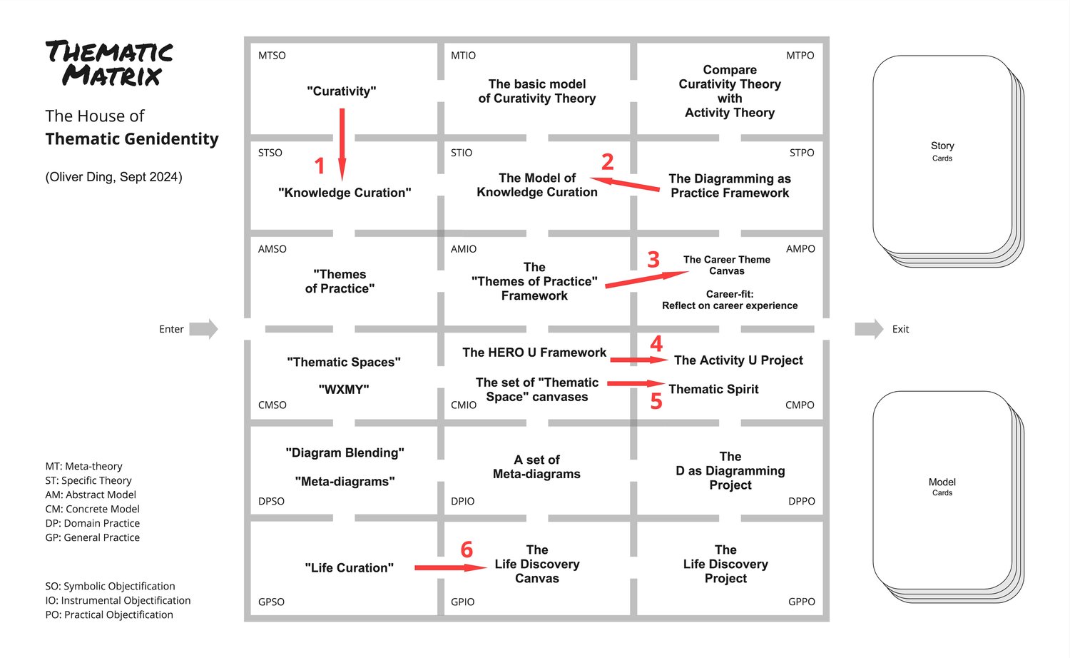 The House of Thematic Genidentity helps creators navigate between these modes, serving as a map for managing long-term knowledge creation and conceptual growth.