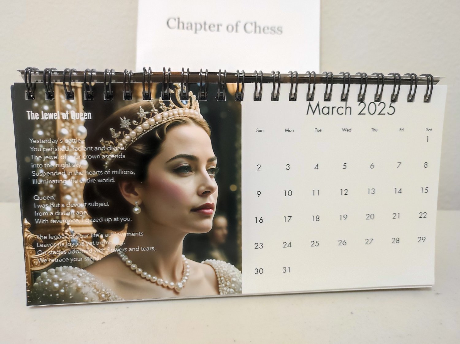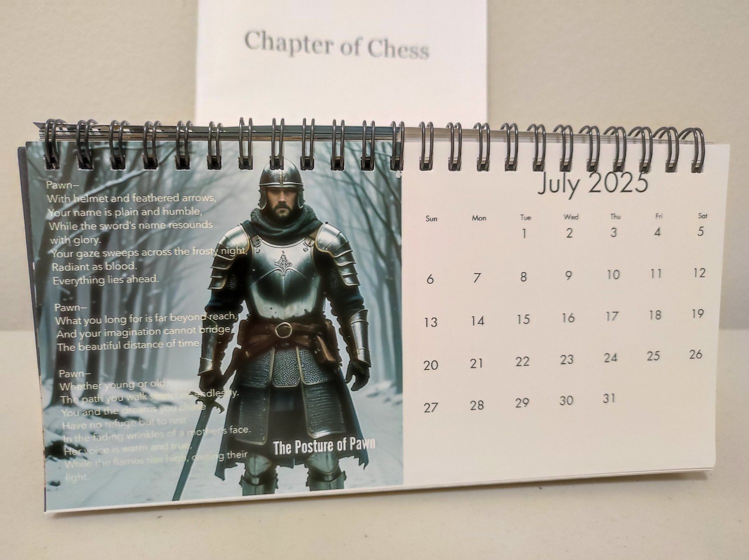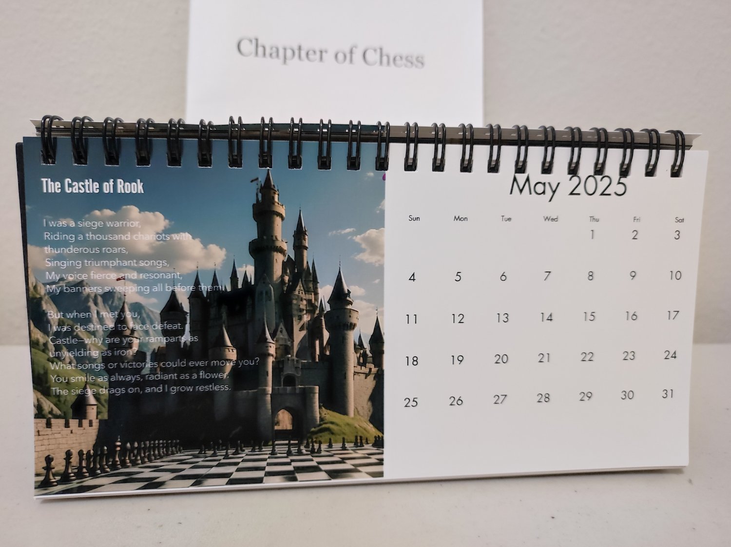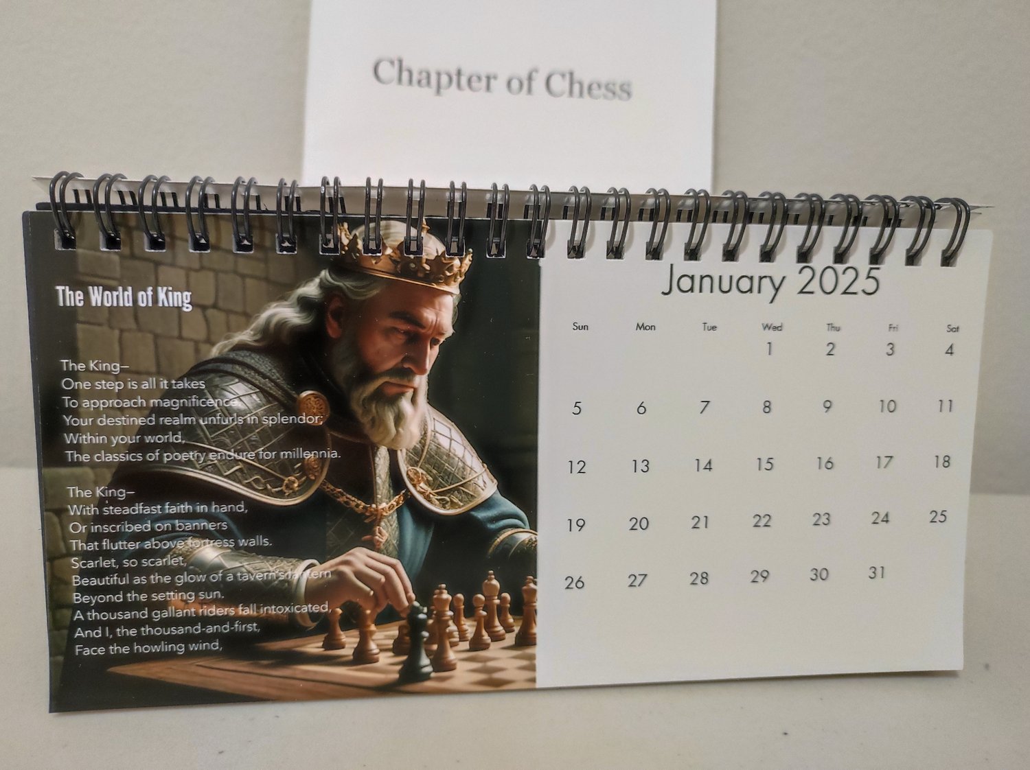 This unique calendar was created as a heartfelt gift from a father to his chess-loving son, blending the timeless elegance of poetry with the strategic beauty of chess.