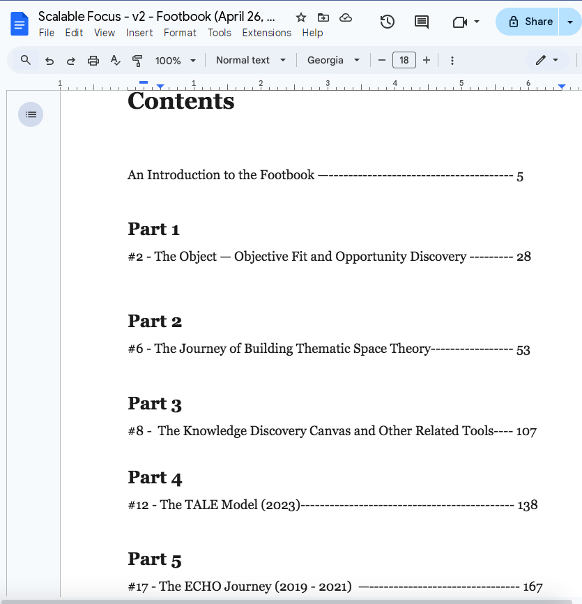 In the following weeks, Scalable Focus emerged as a Strategic Object within his ongoing creative process. While developing the Wonder and Wander project, he conducted several case studies on knowledge strategy. Many of these studies highlighted the value of Scalable Focus, establishing it as a Strategic Theme in knowledge strategy practice.