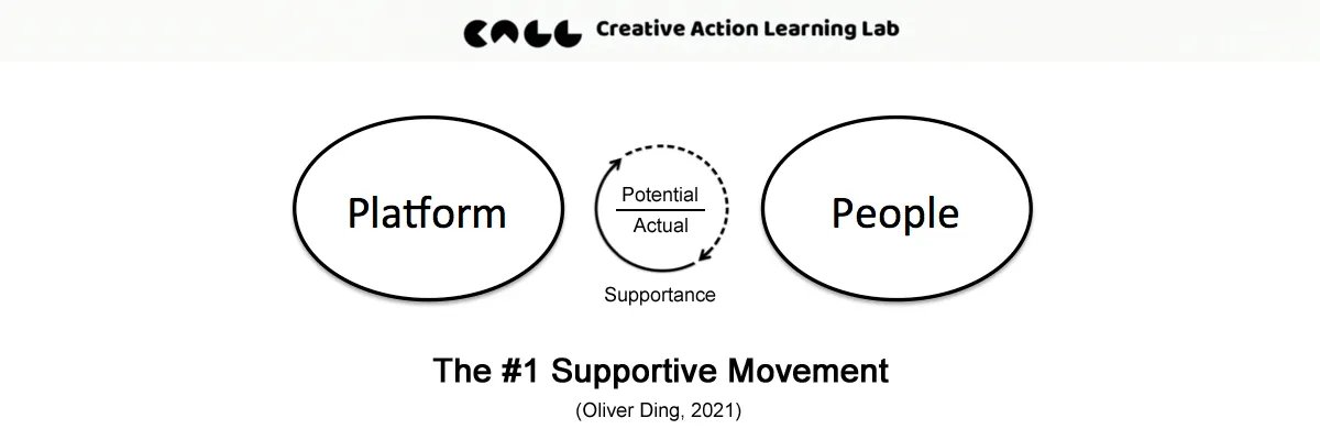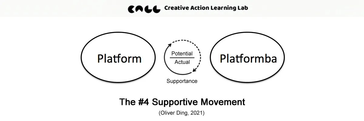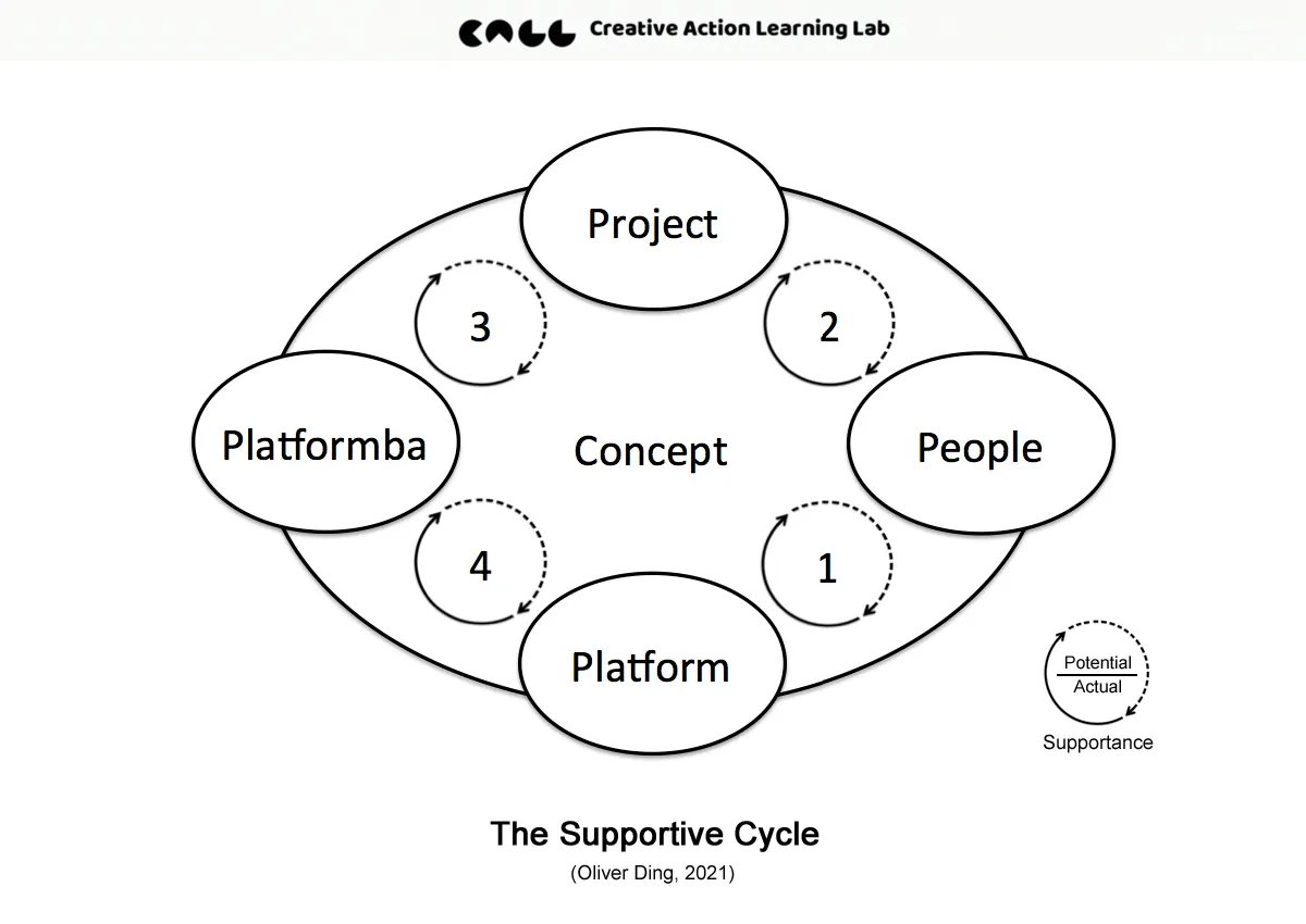The Supportive Cycle explores how Platforms, Projects, People, and Platformba interact through four dynamic “Supportive Movements.” It builds on the concept of Supportance — the potential supportive possibilities for action — to describe how individuals and collectives co-develop within digital and social ecosystems.