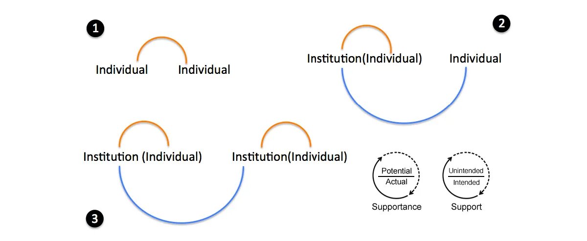 Inspired by James J. Gibson’s concept of Affordance, Ding defines the concept of Supportance as the potential supportive action possibilities offered by a social environment, distinguishing it from Affordance, which is limited to the natural/material environment and perception.
